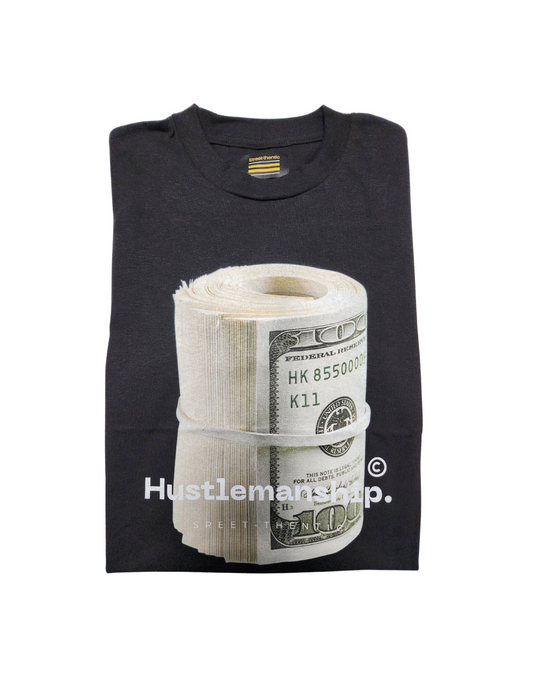 Black streetwear t-shirt. Hustlemanship Bankroll